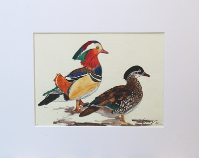 Obere Reihe von links nach rechts:    Entenpaar - Bingen  -  Schwäne